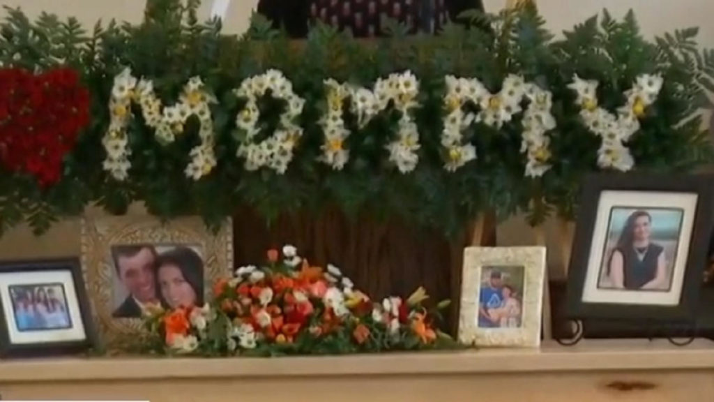 Más de 300 personas abarrotaron el sábado la iglesia local en la comunidad LeBarón, donde la palabra “mommy” (mami) estaba escrita con flores blancas al lado de un corazón formado con rosas.