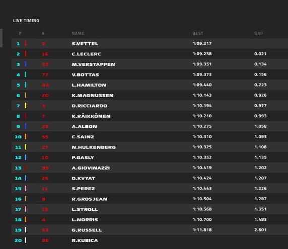 De nuevo, la zona media de la clasificación volvió a mostrarse muy apretada. Entre los coches que pugnan por liderarla, no cabe ni un alfiler, y es que Magnussen logró ser sexto a 0”926 y Sainz, que fue décimo, se quedó a tan solo una décima del danés de Haas. La igualdad será de nuevo protagonista en pleno pelotón en la ‘qualy’ de este sábado, en la que Carlos Sainz buscará otra vez la séptima posición para seguir sumando puntos importantes que le permitan distanciarse de Gasly en la séptima plaza del campeonato.