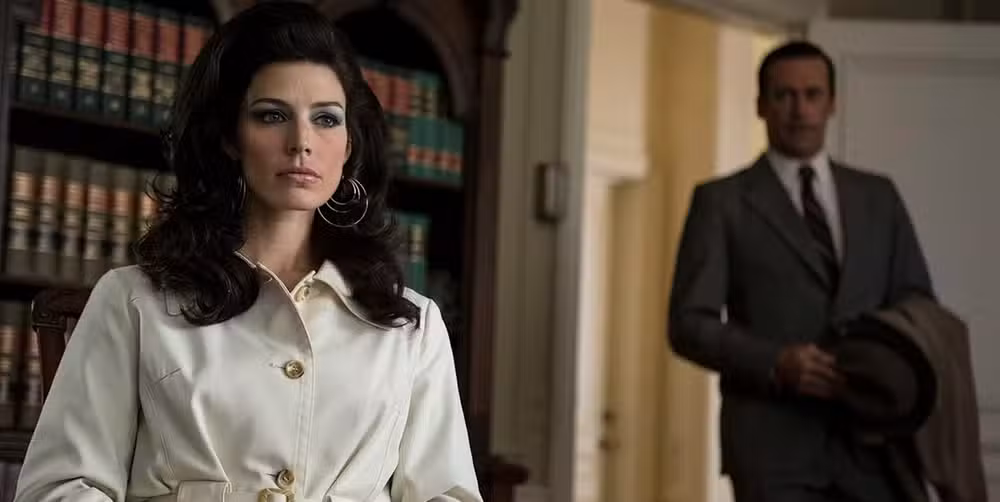 En 1965, la Dra. Faye Miller (Cara Buono) predijo rotundamente que Don, quien era su amante, se volvería a casar. “antes de fin de año.” Don le demostró a Faye que tenía razón cuando rápidamente se enamoró y se casó con su nueva secretaria, Megan Calvet (Jessica Pare). Eran recién casados ​​en Hombres Locos temporada 5, pero su matrimonio no duró.
