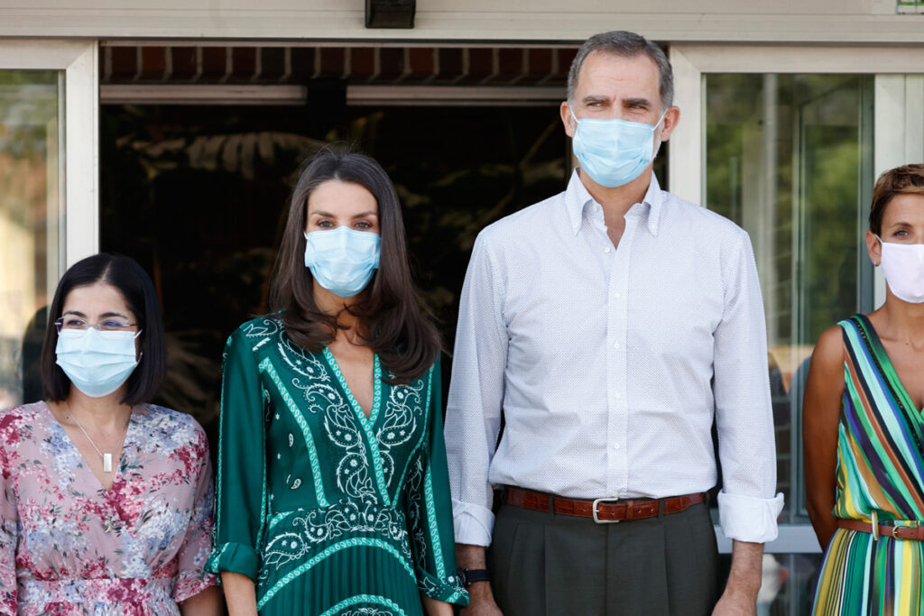 Por su parte, el rey Felipe ha vuelto a apostar por la discreción y la elegancia, dejando atrás el traje para ponerse una camisa blanca con textura, que también se ha remangado por encima de la muñeca, y un pantalón gris de corte clásico. Como es habitual desde el comienzo de la nueva normalidad, ambos han llevado mascarillas higiénicas sencillas.