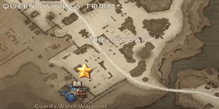 Al viajar por el Osario en diablo inmortal, dirígete hacia el noroeste desde la zona segura y el punto de ruta de Guard’s Watch hasta que veas un arco y un camino que se desvía hacia el noreste. Toma este camino. Poco después de este primer arco hay una gran estatua, vestida con una túnica con capucha y sosteniendo una urna. Continúe por el mismo camino alrededor de la estatua. También habrá un gran emblema circular en el suelo; Continúe por el camino en la misma dirección noreste.