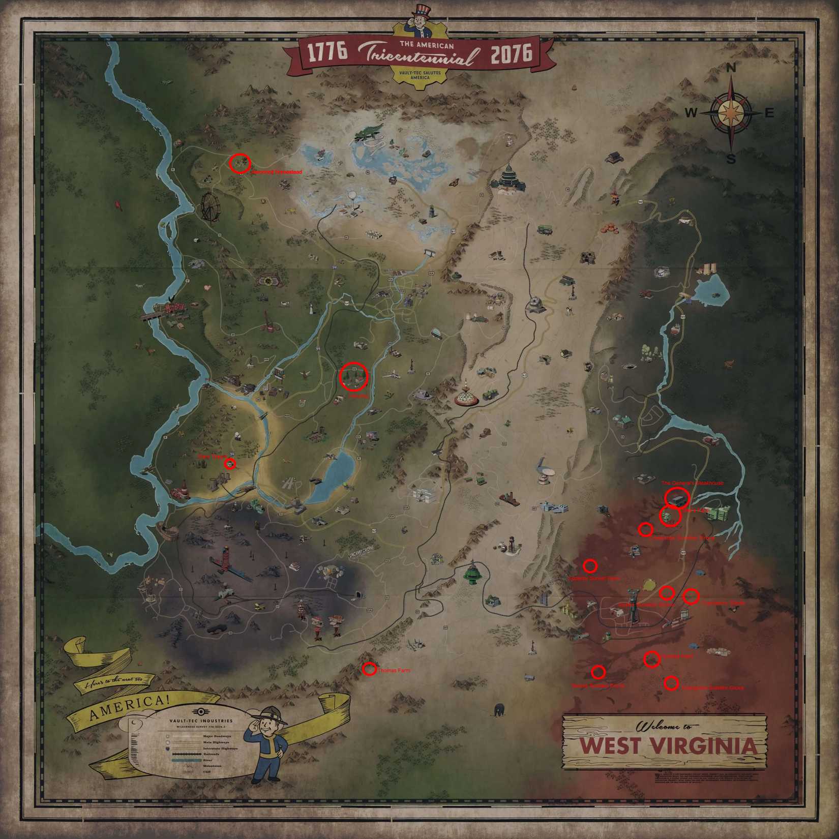 La región de Cranberry Bog se encuentra en el región sureste del mapa, a buena distancia de las cabañas Middle Mountain de los Apalaches. Según Fallout Wiki y el canal de Youtube PoxiiPro, las plantas de arándano se pueden encontrar en las siguientes ubicaciones: