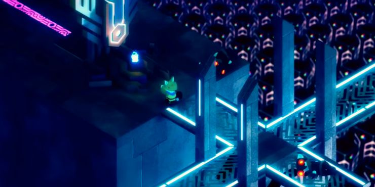 Una vez que el enemigo del pilar es derrotado, los jugadores pueden bajar por la torre usando las escaleras y siguiendo el camino hasta el siguiente hasta llegar a una entrada que conduce al interior. Hay algunas escaleras más para bajar que conducen a una plataforma. Tan pronto como el zorro se pare en la plataforma cuadrada, descenderá a un área con otro punto de guardado. Hay algunas torretas para destruir y muchos enemigos rosados y brillantes en esta área que tendrán el mismo efecto que los cristales que drenan la salud si dan un golpe. También se dividirán en enemigos más pequeños cuando el zorro los golpee. Los jugadores deben esquivar a menudo y vigilar su resistencia mientras progresan.