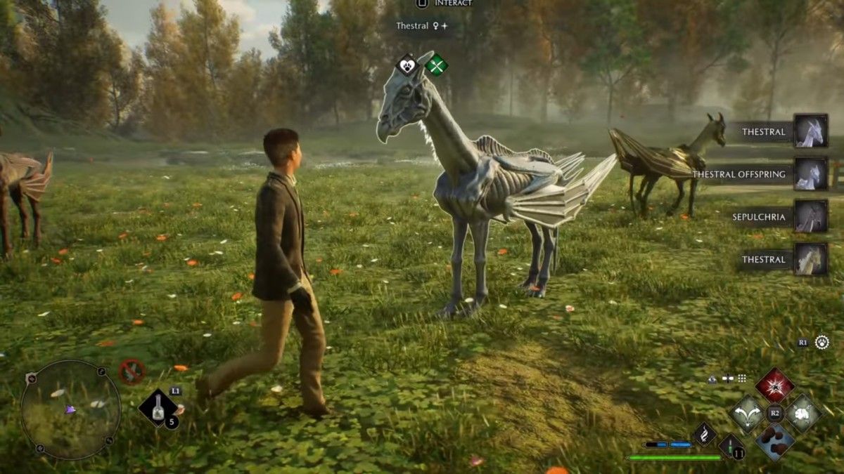 Para capturar con éxito un Thestral, debe utilizar el Amuleto de desilusión, que te permite acercarte a una manada sin asustar a los Thestrals. Sin sigilo, la mayoría de las bestias podrán escapar antes de que los jugadores puedan usar el Nab-Sack para capturarlas. Entonces, usando algunos hechizos como Arresto Momentum, Glacius y Leviosopuedes inmovilizar un Thestral y usar el Nab-Sack.