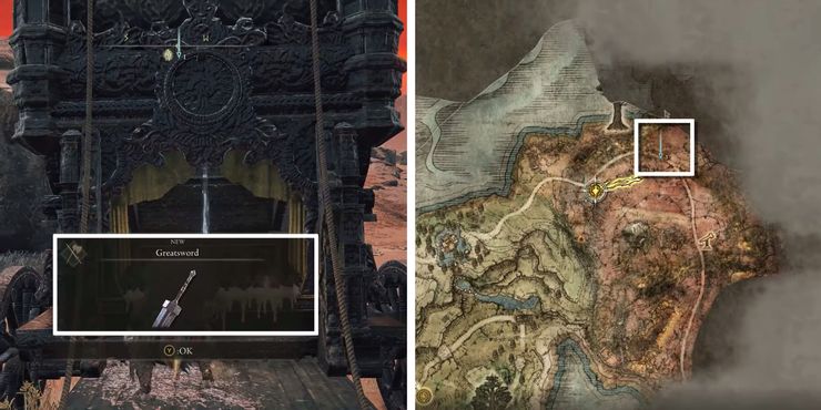 Comenzando desde Rotview Balcony, dirígete hacia el noreste hasta el punto en el camino principal donde el camino comienza a girar hacia el sur. Una vez que los jugadores viajen lo suficientemente lejos, llegarán a una pequeña cresta que domina un campamento. Cerca del sitio se encuentra un carruaje negro notablemente grande en Anillo de Elden mundo abierto. Acércate a la parte trasera del carruaje para encontrar un cofre saqueable. Interactúe con el nodo para recibir el diseño icónico Enloquecido Espadón en Anillo de Elden.