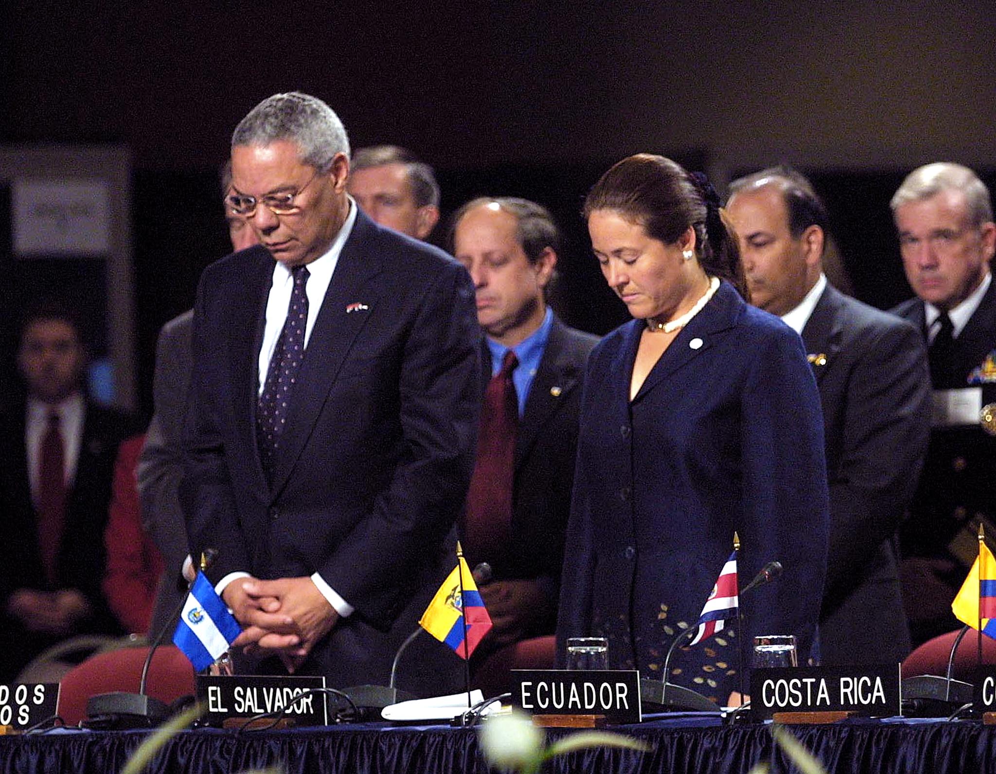 Mientras degustaban las delicias de la cocina peruana, entró uno de los asistentes de Powell, quien le susurró algo en el oído mientras le entregaba un papel. Rememorando el momento, Roberto Dañino, a quien entrevisté para este artículo, cuenta que Powell leyó la nota, frunció el ceño y parcamente informó al grupo que un avión había perdido el rumbo y se había estrellado contra un edificio en Manhattan. El grupo siguió conversando hasta que, minutos después, volvió a entrar el asistente. Le da otro papel a Powell quien lo lee, y sin perder la calma les dice a los comensales que un segundo avión se había estrellado contra un edificio y que todo indicaba que había un ataque terrorista en marcha. “¿Quién está detrás de esto?”, le pregunta Dañino. “Al Qaeda”, respondió rápidamente Powell, para inmediatamente corregirse: “Pero la verdad es que no lo sé. Además, mi experiencia militar me ha enseñado a reaccionar con calma ante grandes eventos. Hay que esperar que la polvareda se despeje y se puedan ver las cosas más claramente”. Le preguntaron si volaba de inmediato de regreso a Washington dejando a uno de sus funcionarios a cargo de firmar el documento. “De ninguna manera”, respondió Powell. “Yo me quedo y lo firmo. La democracia es la mejor arma contra el terrorismo. Lo único que pediré es que adelanten el proceso de las firmas para que yo pueda viajar lo más pronto posible”. Así ocurrió y con la firma de los representantes de los Gobiernos del continente, menos Cuba, se adoptó la carta democrática que los obliga a promover y proteger la democracia en todo el hemisferio.