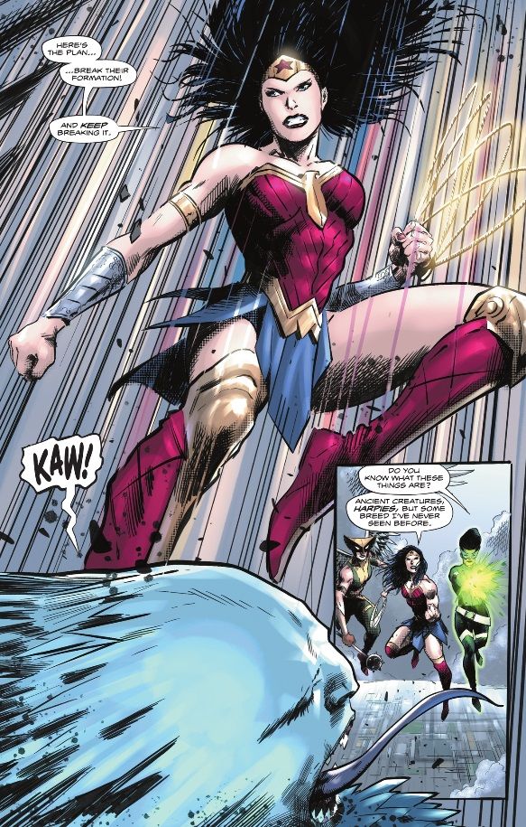 “/> Hawkgirl hace una entrada espectacular en este especial navideño, abalanzándose para proteger a civiles y militares del implacable ataque de las arpías. Sin embargo, la abrumadora cantidad de estas criaturas míticas resulta desafiante, incluso para la formidable Chica Halcón, lo que la llevó a pedir refuerzos con un “donde estan mis chicas?!” Esto prepara el escenario para una introducción épica al último equipo de superhéroes exclusivamente femenino de DC cuando Jo y Diana hacen su entrada, uniendo fuerzas con Kendra para combatir las fuerzas de la arpía. Su destreza colectiva cambia el rumbo contra las arpías y muestra la innegable rudeza de una alianza entre Wonder Woman, Hawkgirl y Green Lantern.dejando a los fanáticos esperando ansiosamente más de este formidable equipo.