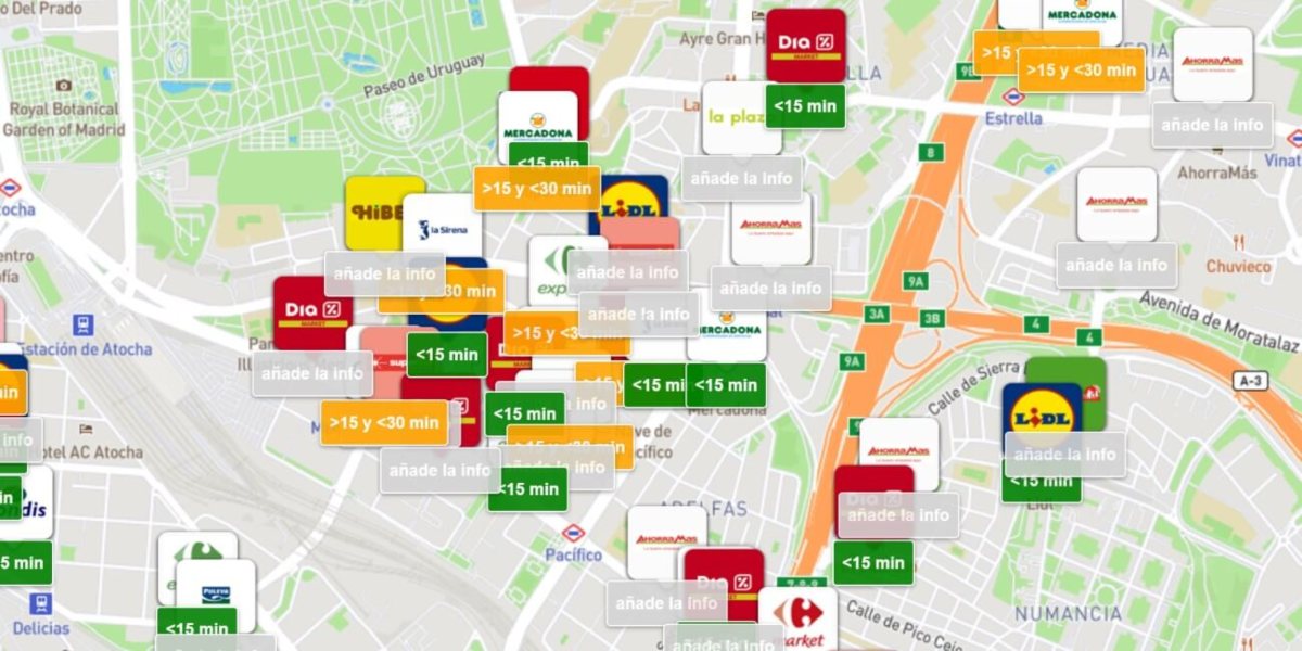 El cliente podrá buscar en un mapa los supermercados más cercanos antes de salir de casa con solo poner su dirección. Cada súper estará marcado con una indicación del tiempo estimado del tiempo de espera de la cola para hacer la compra semanal.