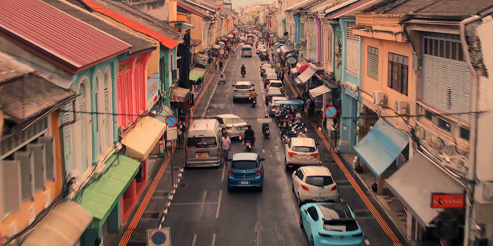 Aparte de una breve toma de establecimiento de Dibuk Road hacia el comienzo de Madre de la novia, Old Phuket Town solo aparece en un montaje de la novia, el novio, la madre de la novia y el padre del novio yendo a la ciudad el día antes de la boda. Se ve a Emma y Lana comprando en una boutique, mientras que RJ y Will visitan una barbería.