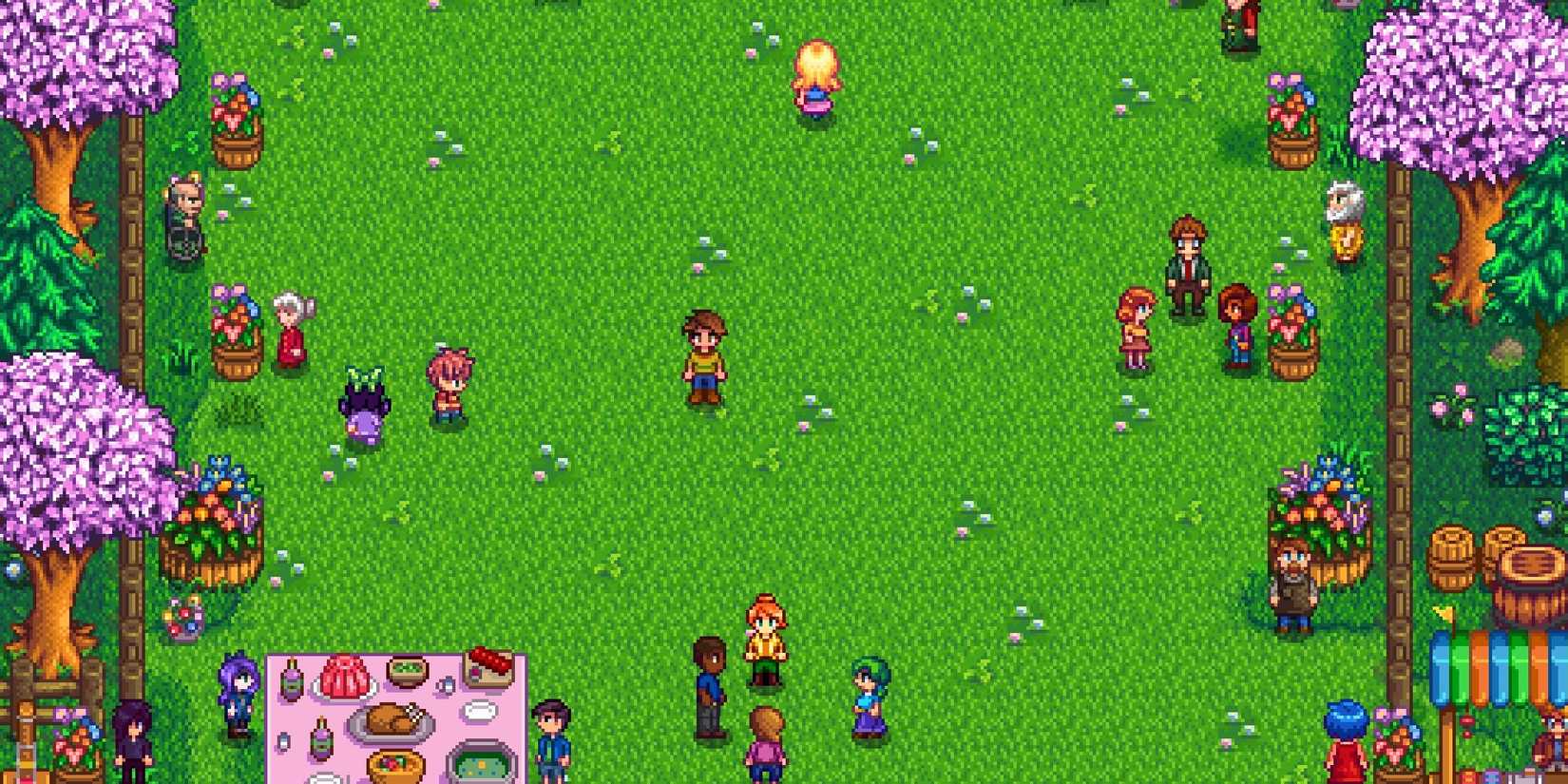 Fiestas de todo tipo se reparten a lo largo del año en Valle stardewy crear pausas periódicas en el ritmo de la vida cotidiana. En estos días, los aldeanos suelen apartarse de sus horarios habituales y participar en todo tipo de actividades interesantes, desde versiones de festividades de la vida real hasta celebraciones más singulares. Además de los equivalentes ficticios de Halloween y Navidad (Víspera del Espíritu y Fiesta de la Estrella de Invierno respectivamente), están el Festival del Huevo y el Luau, así como nuevos festivales introducidos como parte de Valle stardewLa actualización 1.6 es como el Trout Derby.