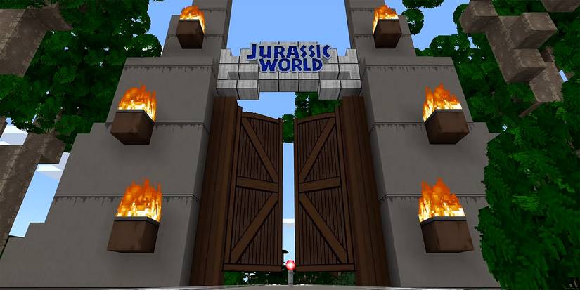 Desde el principio Minecraft‘s Mundo jurásico DLC es sorprendentemente con precisión de la película. Monta el monorraíl directamente al parque, que es una recreación de arriba hacia abajo y casi perfecta del mundo Jurassic como lo recuerdas.
