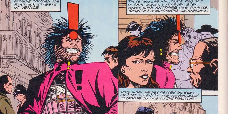 Uno de estos metahumanos fue Malcolm, que se conoce con el alias de Agente “!”. Lleva atuendos llamativos y brillantes que parecen diseñados para llamar la atención. Sin embargo, su superpoder le permite mezclarse con la multitud tan a fondo que él, y cualquiera con quien esté, se convierte en por poco imposible de ver. Desafortunadamente, tiene poco o ningún efecto sobre la capacidad de activar o desactivar dicho poder. Como resultado, Malcolm ha luchado por mantener las relaciones sociales y lamenta el hecho de que nunca puede sorprender a nadie; de hecho, en los cómics, su Patrulla condenada El eslogan es efectivamente: “¡No es ninguna sorpresa!”