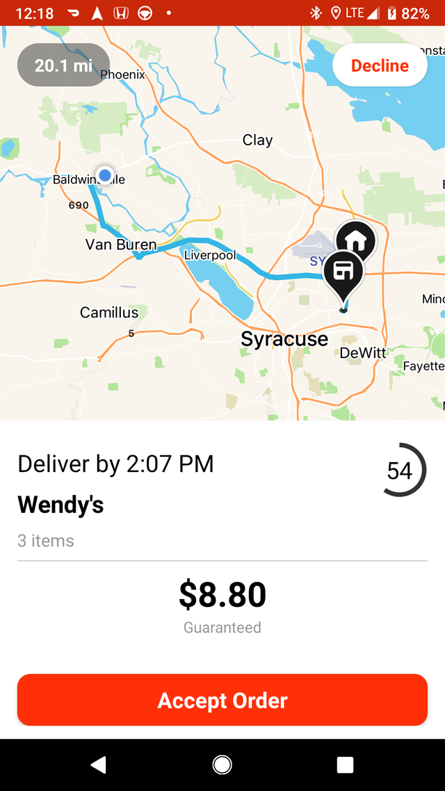 Para que quede claro, los conductores ven la cantidad garantizada en la aplicación antes de decidir aceptar o rechazar el pedido. Esa cantidad se basa en el tamaño del pedido, independientemente de si tiene que realizar el pedido en persona, la distancia, el tráfico y otros factores.