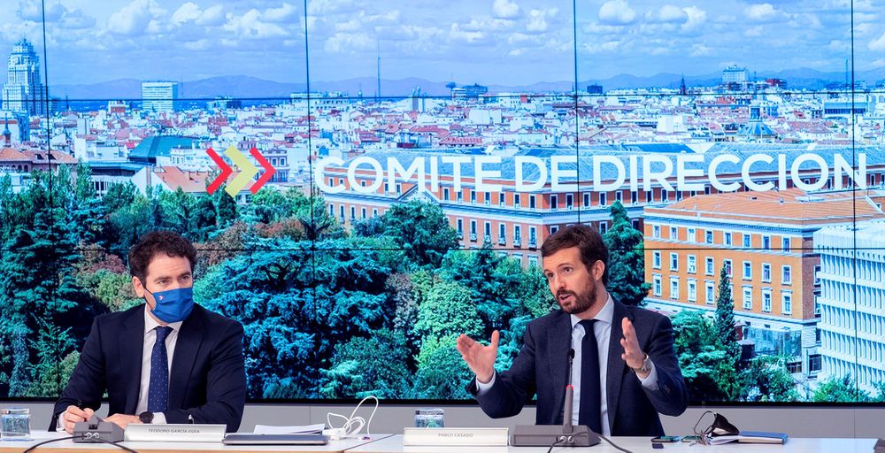 El presidente del PP, Pablo Casado (derecha) y el secretario general del PP, Teodoro García Egea, durante a reunión del Comité de Dirección de la formación.DAVID MUDARRA / PP/EFE