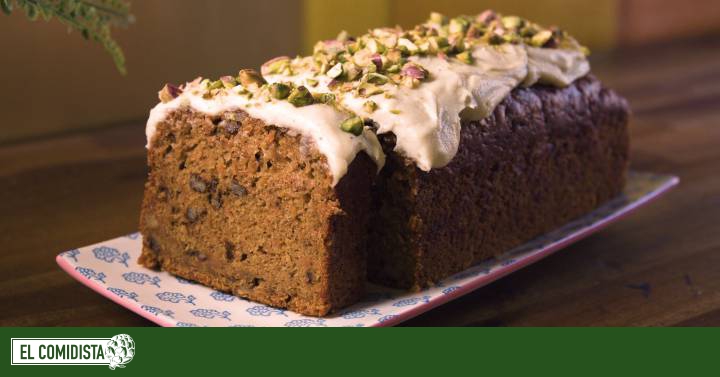 10. Cuando tanto el bizcocho como la cobertura estén fríos, repartir ésta sobre el carrot cake y terminar con unos pistachos picados.