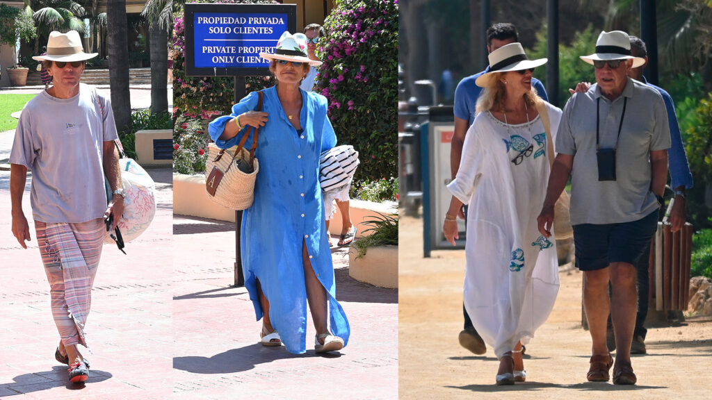 Ahora le ha llegado el turno a Felipe González. En un reportaje al que ha tenido acceso este portal se ve al político junto a su mujer, en el mismo destino en el que ha estado el matrimonio Aznar-Botella. En las imágenes se puede ver a Felipe González vestido con bermudas oscuras, un polo en tono gris y sandalias. El político lleva al cuello una pequeña bolsita, probablemente para guardar su teléfono móvil u otros elementos. Por su parte, su esposa, Mar García Vaquero, sigue la estela de Ana Botella, con una túnica, en su caso, de algodón y con detalles estampados en tono azul que reproducen peces y otras figuras relacionadas con el mar. Tanto Mar García Vaquero como Felipe González portan gafas oscuras y sombreros, igual que la pareja Aznar-Botella.