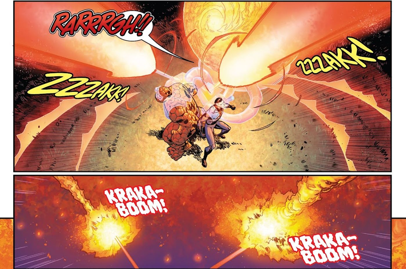 #18, los hermanos superhéroes Sue y Johnny Storm, la Mujer Invisible y la Antorcha Humana de Marvel, combinaron sus poderes para prevenir una catástrofe global, demostrando el verdadero alcance de sus habilidades. - En el número, Franklin Richards prevé un desastre, pero, inspirado por Alicia Masters, el equipo salva el día creando poderosos rayos láser que pueden destruir sin esfuerzo la amenaza de asteroide entrante.