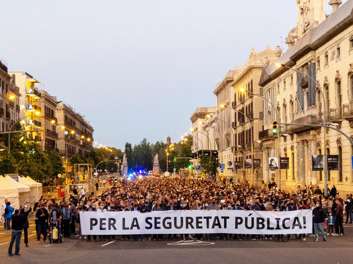 Unos 2.000 mossos d’esquadra, policías locales y vigilantes de seguridad se han manifestado este sábado por el centro de Barcelona —según el recuento efectuado por la Guardia Urbana— reclamando que se acaben las agresiones perpetradas contra los agentes en las últimas semanas, exigiendo respeto por parte de la ciudadanía y las instituciones y pidiendo que se acabe la “utilización” partidista que realizan las diferentes formaciones sobre las fuerzas de seguridad. Pese a que los agentes advierten de que la situación que sufren es consecuencia de las injerencias de todos los partidos políticos, diputados y regidores del PP y Ciudadanos se han unido a la manifestación de policías.