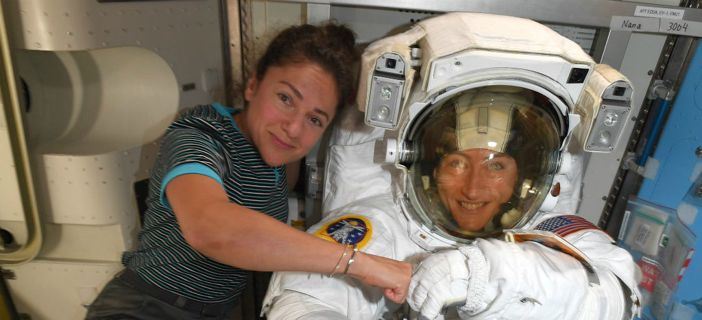 Las astronautas se convertirán en las astronautas número 14 y 15 en maniobrar fuera de la base y pasarán a la historia como las primeras mujeres del mundo en realizar una caminata espacial femenina, ya que, aunque otras féminas, han salido ya fuera de la EEI, siempre lo hicieron con un compañero masculino.