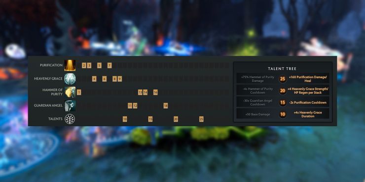 Los talentos son lo que es principalmente diferente para un Omniknight central. Hammer of Purity escala con los objetos de Omniknight, por lo que se priorizan los talentos que lo mejoran. En el nivel 15, generalmente se prefiere el tiempo de reutilización de Purificación, ya que acelera su velocidad de agricultura y, al mismo tiempo, es el talento más confiable, pero al igual que en el Omniknight de apoyo, el otro talento no es malo.