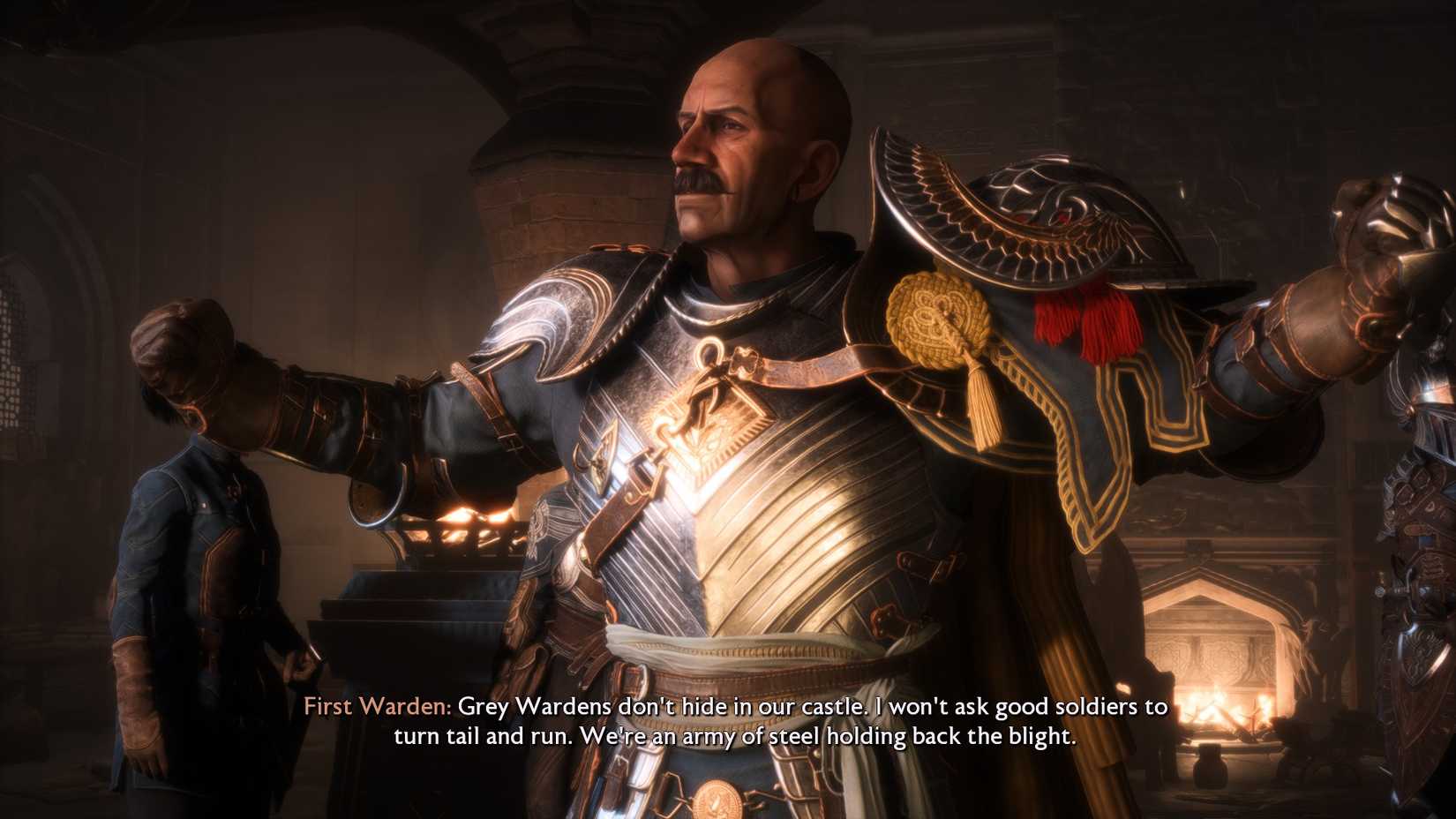 Al final de “El asedio de Weisshaupt”, por ejemplo, después de que el grupo haya atraído al Archidemonio Razikale a una trampa, el Primer Guardián aparecerá nuevamente e intentará matar al dragón él mismo por el bien de su gloria personal. Más adelante en el juego, en la misión “The Profane and the Lost”, se vuelve a encontrar al Primer Guardián, ahora corrompido por Blight. Si fue noqueado, el Primer Guardián se engaña cuando se lo encuentra aquí, creyendo que todavía está en Weisshaupt y que Davrin lo sacará de su miseria.