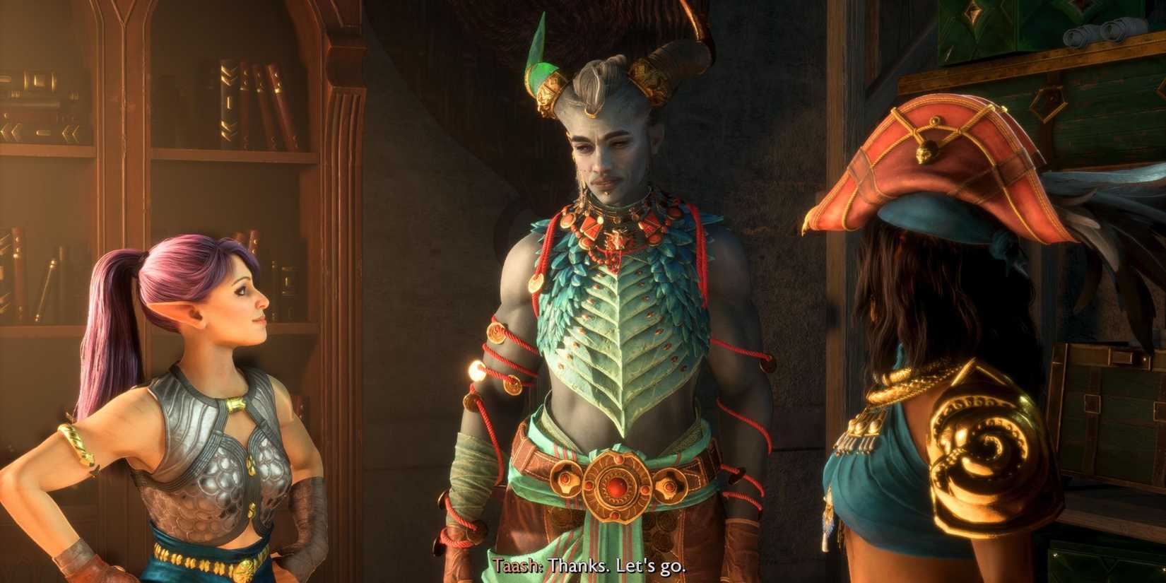 En cuanto a tu elección de guerrero, Taash será el camino a seguir. Una vez más, su constante daño por fuego los convierte en una excelente opción para acompañar el estilo de juego explosivo y de entrada y salida de un pícaro. Además, Taash puede burlarse de los enemigos, desviando su atención de ti. Como pícaro, permanecer fuera de la vista y fuera de la mente es muy útil para tener algo de espacio para trabajar.