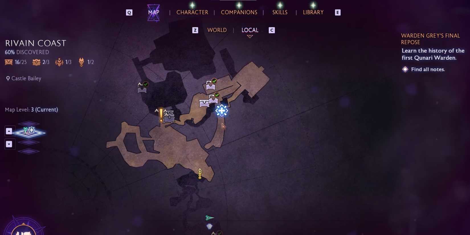 En el área en ruinas, verás algunos restos de Grey Warden apoyados contra una pared debajo de un mural de colores de un grifo comiéndose a alguien. Tras la inspección, leerás un poco sobre Warden Grey, quien fue el primer Qunari Warden en la historia de Thedas. Es comprensible que Taash esté impresionado, ya que los qunari tienen un linaje interesante en Thedas, y le pedirá que busque más notas sobre esta figura histórica qunari.