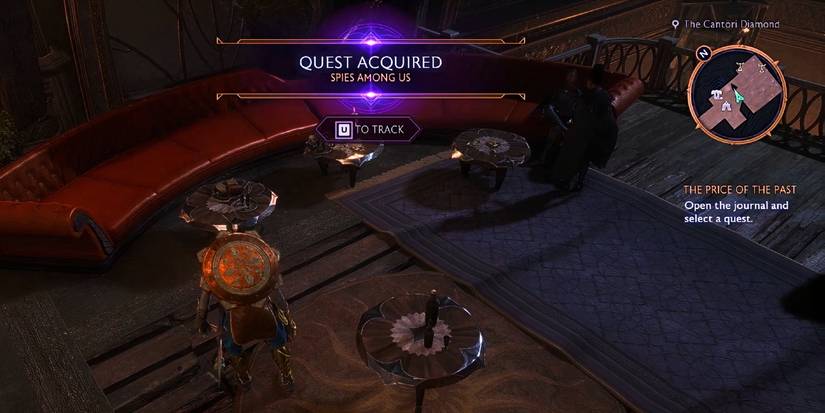 Para comenzar esta búsqueda, dirígete al Santuario de los Cuervos Antivan en Trevisoque se encuentra en el distrito Central de la ciudad. A medida que te acerques, aparecerá un marcador de misión que te mostrará la ubicación de un pergamino cerca de Viago. Acércate e interactúa con él para leer este pergamino y comenzar la misión Spies Among Us. Después de leer el pergamino, dirígete hacia el norte desde el Santuario y usa la tirolesa para cruzar un espacio.