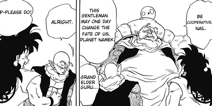 Dragon Ball Z vio la serie expandirse al espacio cuando los Z-Fighters buscaron nuevas Dragon Balls capaces de desear que varias personas vuelvan a la vida. El mundo natal de Piccolo, Namek, estaba lleno de solo unos 100 Namekianos, todos nacidos de un anciano llamado Guru. Guru se convertiría en una figura central de la historia del arco de Frieza solo para morir de viejo cuando era más inconveniente. Freezer acababa de poner sus manos sobre las Dragon Balls cuando Guru croó y las Dragon Balls se convirtieron en piedra.