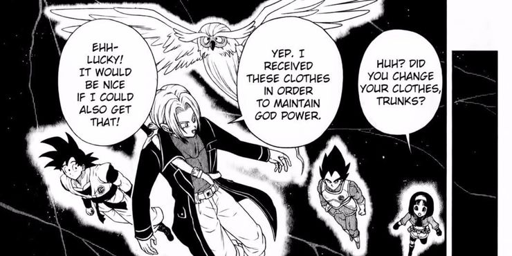 en un anterior Super Dragon Ball Héroes saga, Trunks ganó el poder de Super Saiyan God para derrotar a un enemigo casi imbatible. Para retener este poder de nivel divino, a Trunks se le otorgó un traje encantado que lo ayudó a mantener esa energía. La ropa que le da esta ventaja es una gabardina negra larga con un traje táctico ceñido debajo, mientras que también está completamente equipado con la icónica espada de Trunks. Este look es una versión más madura de su estilo original, ya que mantiene los aspectos clave de lo que hizo que Trunks se viera tan genial al principio y eleva ese aspecto de lo que es en este capítulo. Además, esa ropa cumple una función clave para mantener su energía a nivel de dios, haciéndola tan útil como elegante.