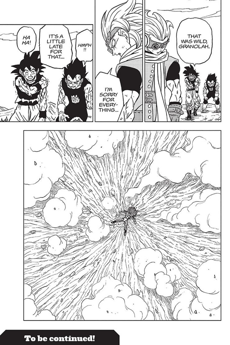 En Dragon Ball Súper Capítulo 86, Goku está en una situación desesperada después de que Gas se encendió aún más, aprovechando toda la energía que le otorgaron las Dragon Balls cuando deseaba convertirse en “el guerrero más fuerte del universo”, a expensas de quemar su propia vida. Mientras Goku está completamente abrumado, Granolah regresa después de que Gas casi lo mata, y se une al Saiyan para derrotar a su enemigo común. Goku, con la ayuda de Vegeta, le da a Granolah el tiempo suficiente para cargar un nuevo y poderoso ataque que finalmente puede derrotar a Gas, poniendo fin a la pelea.