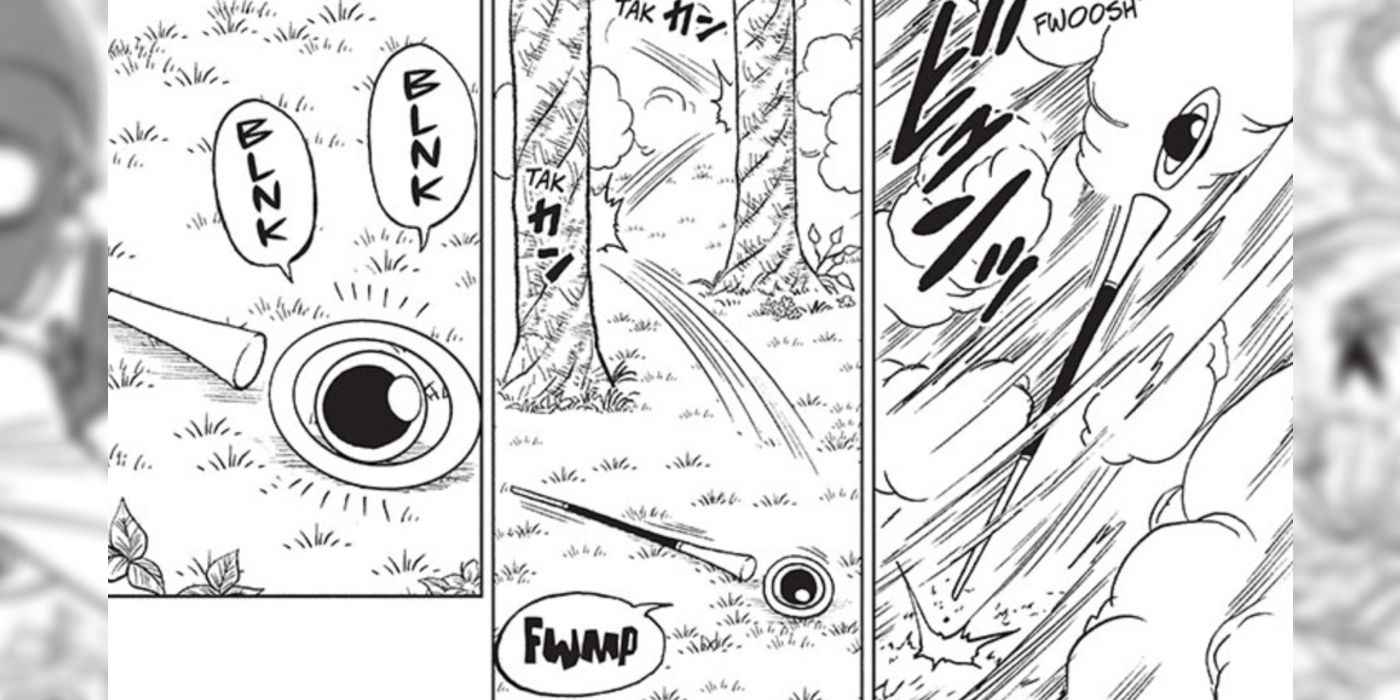 Después de que Piccolo le dice a Bulma que lleve a Goku y Vegeta de regreso a la Tierra, Bulma llama al personal de Whis, pero en el momento en que su personal comienza a sonar como un teléfono, una explosión de la pelea en curso entre Goku y Broly lo aleja de él. Dragon Ball Súper capítulo 92 del mangaka Akira Toriyama, el artista Toyotarou, el traductor Caleb Cook y el rotulista Brandon Bovia. Como resultado, Whis no recibe el mensaje de que Goku y Vegeta deben regresar a la Tierra.