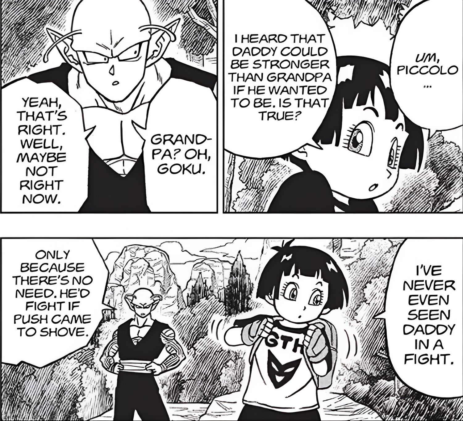 “/> El hecho de que Gohan sea actualmente el luchador más fuerte de la franquicia ha sido mencionado en varias ocasiones, incluso por Toriyama en una entrevista, donde llamó al medio Saiyajin “más fuerte que nadie, o eso se dice”. Además, en el capítulo #91 de Dragon Ball Súper, Pan le pregunta a Piccolo si su padre podría ser más fuerte que su abuelo. El primero responde diciéndole que Gohan podría superar fácilmente a Goku, si tan solo se tomara la lucha más en serio.