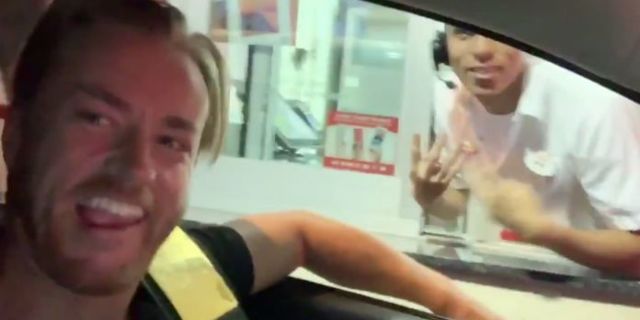 "¿Sabías que estás sirviendo comida al nuevo Campeón de la WWE 24/7?" Maverick le preguntó a una mujer mientras él esperaba en su coche en busca de su comida.