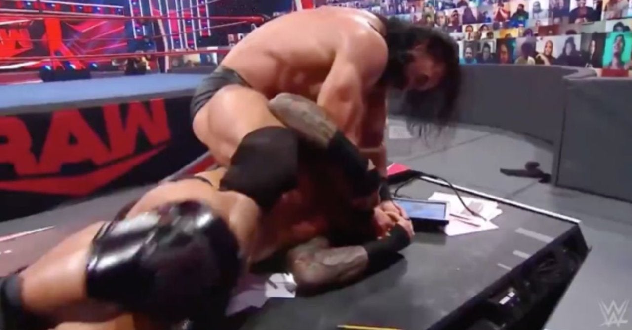 De esta semana Monday Night Raw salió del aire con Randy Orton siendo acorralado por “The Fiend” Bray Wyatt y Drew McIntyre, lo que resultó en otra pelea con este último. Pero mientras que ahí fue donde terminó la transmisión, WWE todavía tenía las cámaras rodando cuando McIntyre colocó a Orton en la mesa de comentarios, tomó un bolígrafo e intentó cegar a “The Viper” apuñalando su ojo derecho. El usuario de Twitter @ conman167 afirmó que las imágenes se transmitieron durante la transmisión canadiense. A partir del martes por la mañana, ni WWE.com ni los canales de redes sociales de la WWE abordaron el lugar, aunque el clip de YouTube de la WWE incluye las imágenes del apuñalamiento.