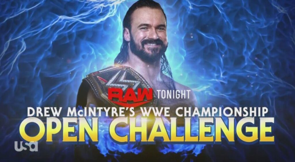 Drew McIntyre abrió Monday Night Raw de esta semana celebrando su exitosa defensa contra Randy Orton junto a Ric Flair, Shawn Michaels, Big Show y Christian. La celebración del campeón fue interrumpida por Orton, quien envió un mensaje desde el TitanTron de que su enemistad con McIntyre no había terminado hasta que él dice que se acabó. “The Viper” luego se marchó furioso, y McIntyre declaró que tener gente que lo ayude a ganar partidos no es el tipo de campeón que quiere ser. Como resultado, lanzó un desafío abierto a cualquier persona en el vestuario de Raw para una pelea por el título, siempre que no lo hayan desafiado previamente.
