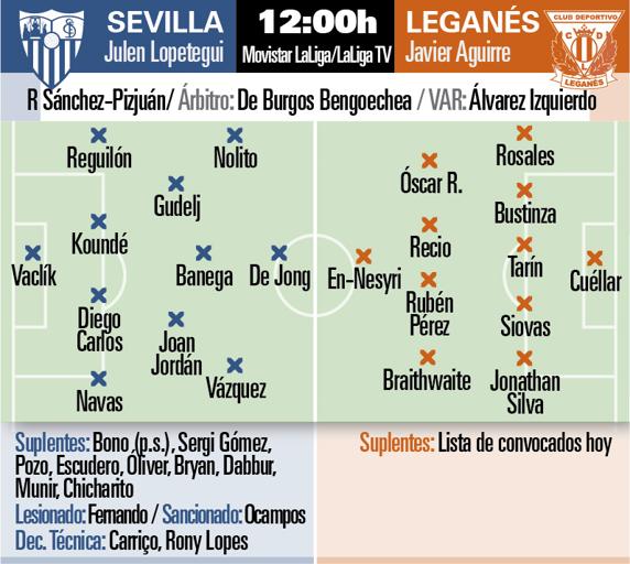 Enfrente estará el Leganés, que visita el Ramón Sánchez Pizjuán en busca de la primera victoria de la ‘era Javier Aguirre’ después de un empate y una derrota en los dos primeros partidos con el mexicano.