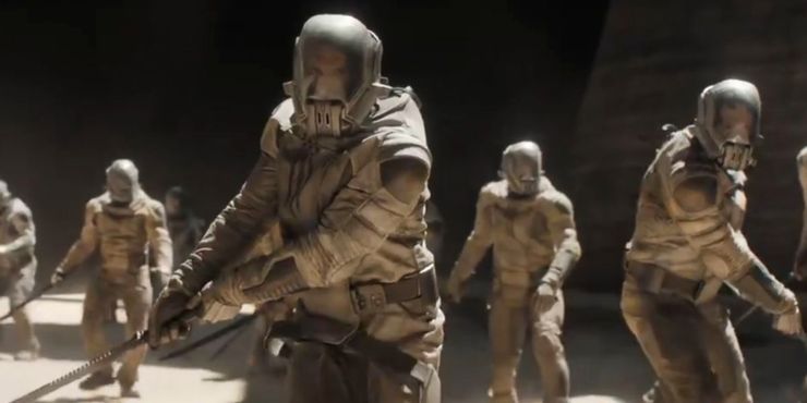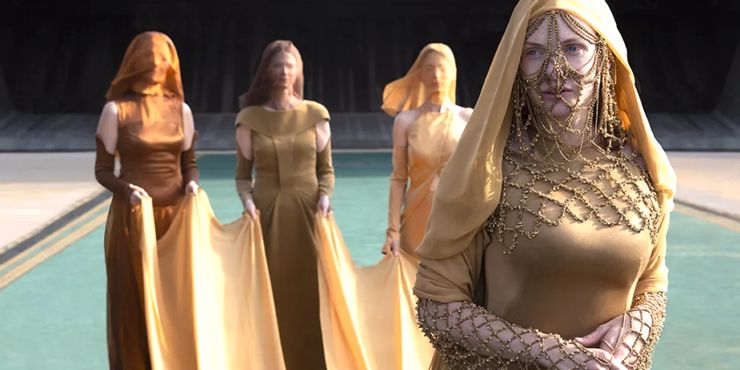 Cuando la misteriosa hermandad conocida como Bene Gesserit hace su primera aparición en la película, caminando bajo la lluvia con solemnes túnicas negras en la oscuridad de la noche, crean una imagen increíblemente visceral que permanece en la mente de los espectadores. Con el estilo de sus túnicas y capuchas amplias, se parecen a los monjes medievales, que es por diseño.