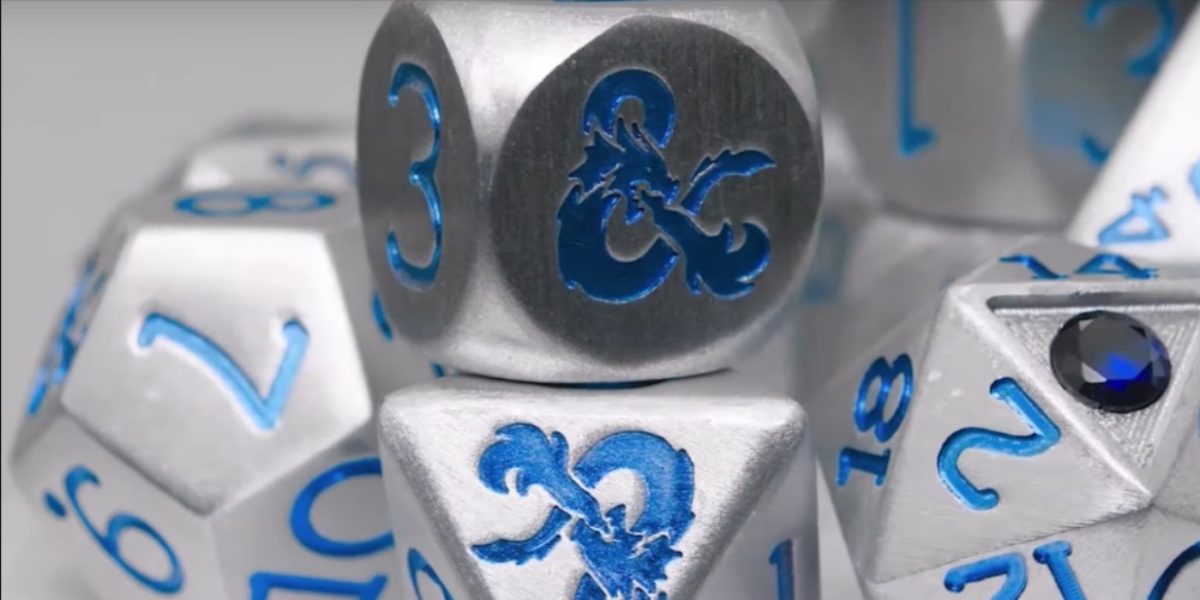 Esta semana, Wizards of the Coast anunció una nueva celebración de Calabozos y Dragones legado. El editor ha fabricado una serie limitada de juegos de dados "Sapphire Anniversary" de edición especial que se lanzarán el 21 de noviembre por $ 299.99 Estos juegos contienen once dados de aluminio anodizados de lujo y presentan como pieza central un juego de dados de veinte lados con un zafiro cultivado en laboratorio en lugar de la cara veinte. Los otros diez dados presentan el logotipo de signo comercial de la Quinta Edición grabado en lugar de su valor más alto. El set también viene con una caja y bandeja de dados personalizados, así como una hoja de calcomanías, una tarjeta desplegable con arte, estadísticas del juego para un dragón de zafiro (un monstruo que no se ve en Calabozos y Dragones desde la tercera edición), y una tarjeta de colección numerada secuencialmente. Solo se lanzarán 1.974 de estos juegos de dados de aniversario, en honor del año en que se lanzó el juego por primera vez.