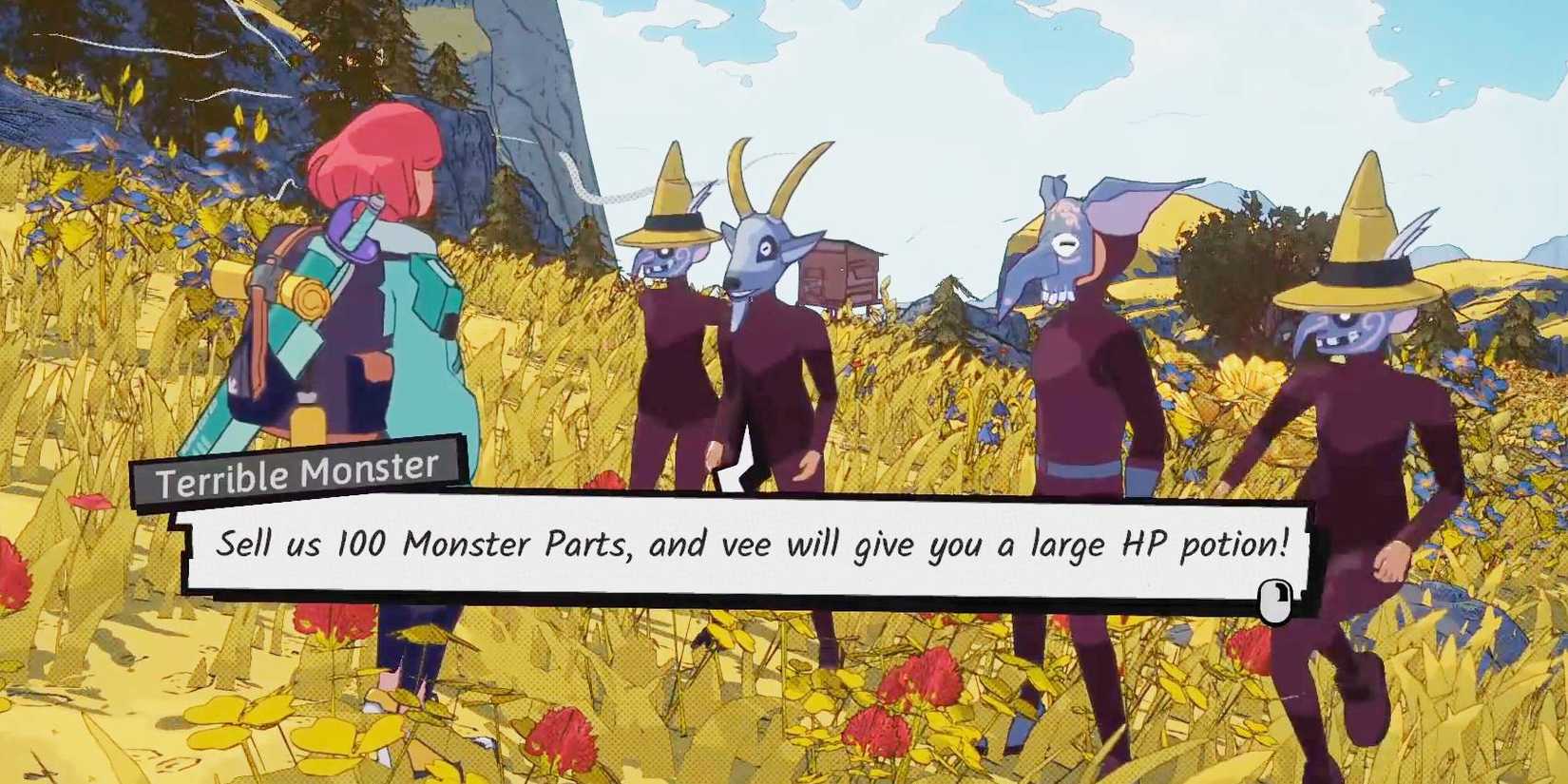 La encantadora mezcla de Mazmorras de HinterbergEl mundo de ‘s puede llevarte al Monster Club temprano mientras exploras fuera de la aldea del título. Pronto verás a cuatro personas bailando alrededor de un estéreo portátil con máscaras de diferentes monstruos en la distancia. Hablar con ellos inicia el “Amigos del Club de Monstruos” misión, que te incentiva a traerles una tonelada de piezas de monstruos recolectadas durante tus viajes.