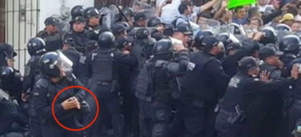 El uso de gases lacrimógenos sólo se da por instrucciones de mandos superiores, pero el comandante Luis Felipe Saidén Ojeda dijo que el uniformado “accionó un mecanismo disuasivo para defender a sus compañeros policías de la agresión de la que eran objeto”. El policía ha sido suspendido mientras se realiza una investigación