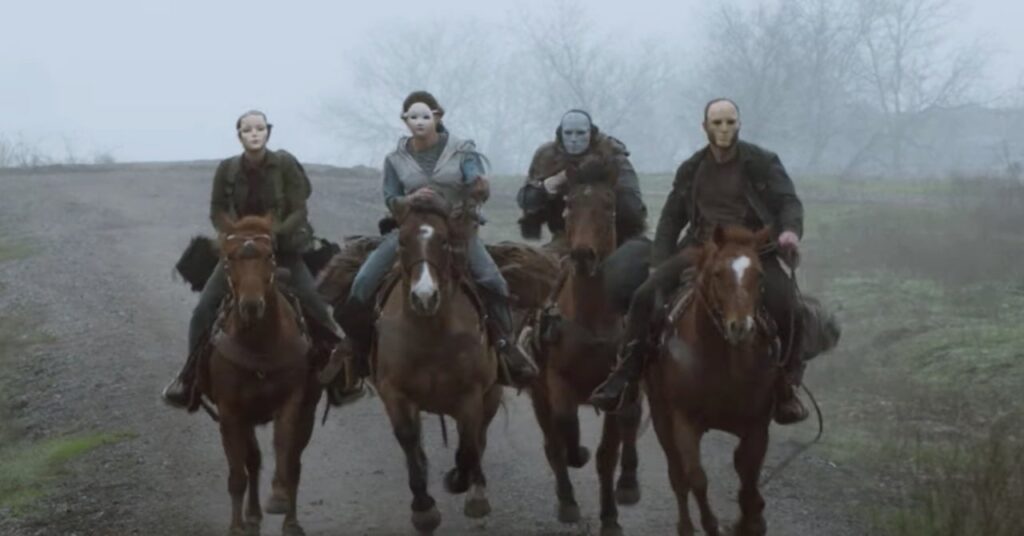 En un clip de “Honey”, los aliados con máscaras de Dwight y Sherry planean un ataque al MRAP usando explosivos, pero Al tiene una idea diferente: