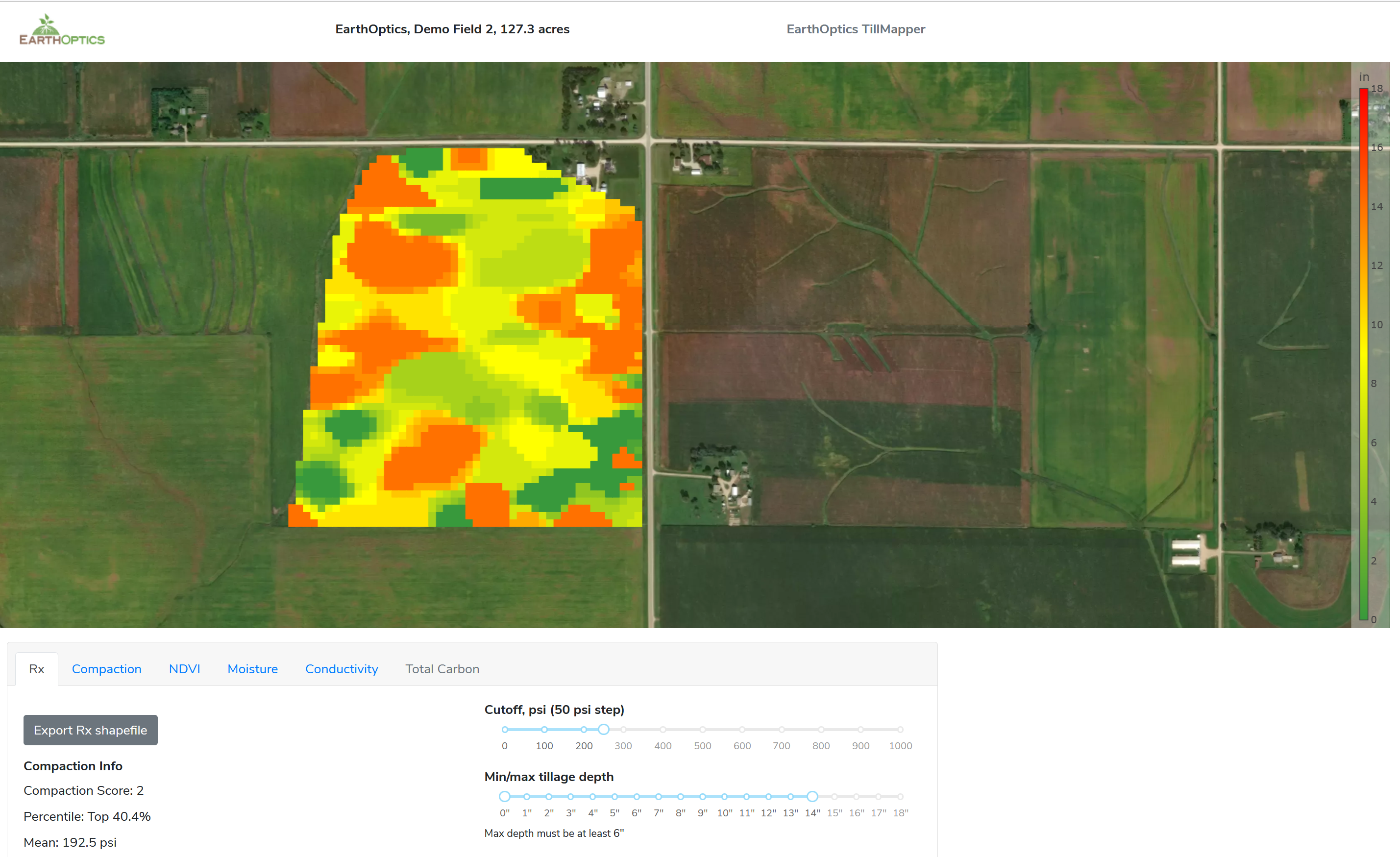 Con los métodos actuales, puede dividir sus miles de acres en trozos de 50 acres: éste necesita más nitrógeno, éste necesita labranza, éste necesita este o aquel tratamiento. EarthOptics lo reduce a la escala de metros, y los datos se pueden introducir directamente en la maquinaria de campo robótica como una cultivadora inteligente de profundidad variable.