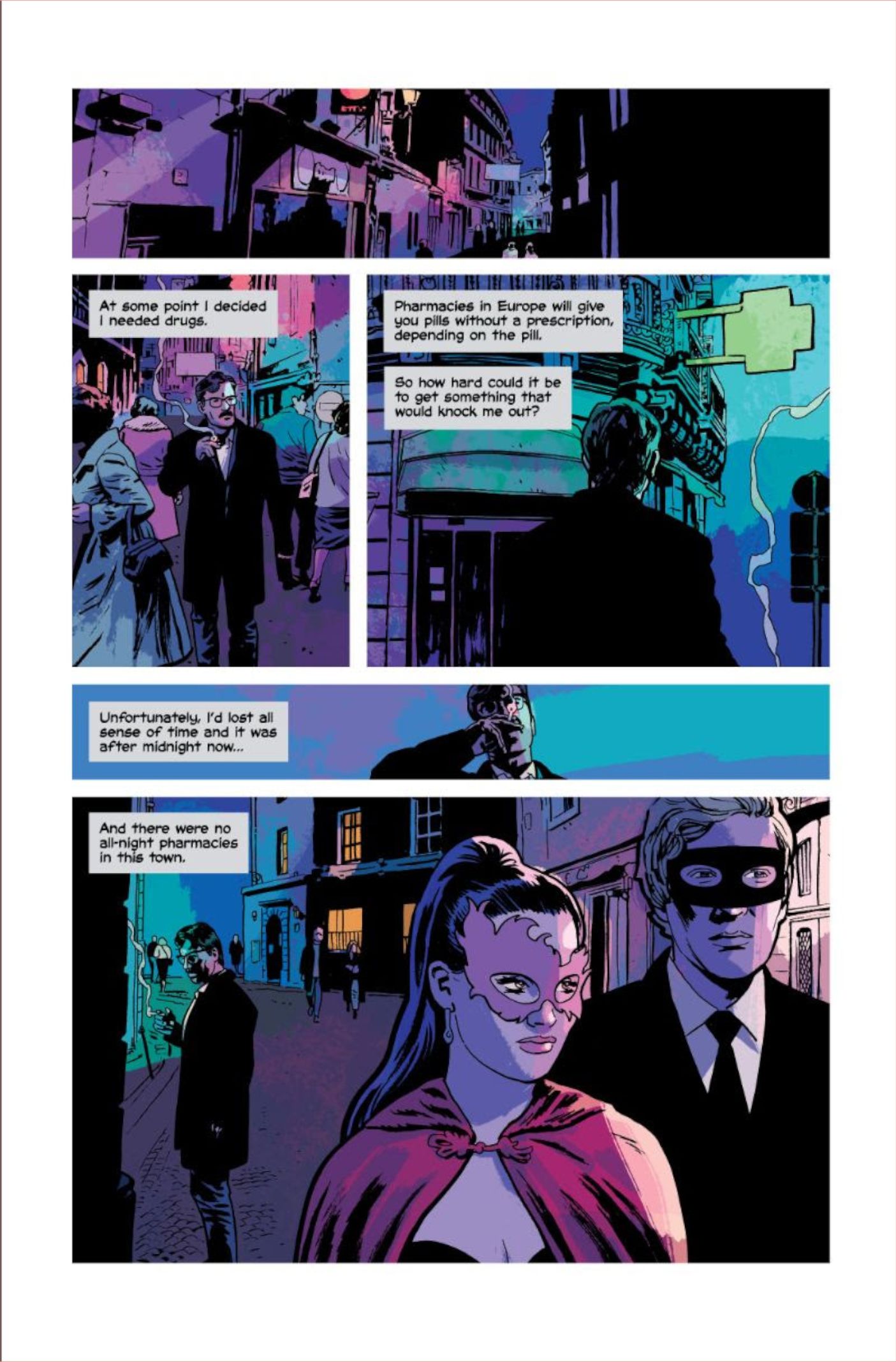 Brubaker recientemente compartió algunas nuevas páginas de vista previa a través de su boletín antes del lanzamiento de OGN y discutió los orígenes del proyecto. “FIEBRE NOCTURNA fue escrito en un estilo un poco de corriente de conciencia,Brubaker escribe, “como si básicamente supiera a dónde iba, pero me dejé mucho espacio para vagar mientras contaba la historia.” Contando la historia de un hombre en un viaje de negocios en Europa lidiando con un ataque de insomnio, Fiebre Nocturna promete ser un viaje oscuro y retorcido. Brubaker continúa hablando sobre lo diferente que es el proyecto para él y el artista Phillips. “Es bastante extraño en comparación con decir, el Imprudente libros (Trabajo anterior de Brubaker y Phillips). Y definitivamente nosotros haciendo un guiño a los viejos cómics europeos de los que crecimos viendo malas traducciones en las reimpresiones estadounidenses.“