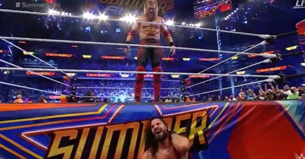 Ha sido todo un vaivén entre Edge y Seth Rollins en SmackDown, y las cosas subieron otro nivel durante el episodio de anoche, cuando Rollins envió a Edge … bueno, al límite y hacia una persona vieja. Edge traería de vuelta sus días como parte de The Brood, entregando un Baño de sangre a Rollins en el SmackDown de anoche. Eso marcó el tono, y Edge lo siguió con un regreso completo de Brood en SummerSlam, completo con fuego, luces rojas, humo y sombras. Una vez que llegaron al ring, se miraron el uno al otro por un momento y luego finalmente se encerraron, y Edge lo dejó caer con una derecha dura y una sonrisa diabólica.