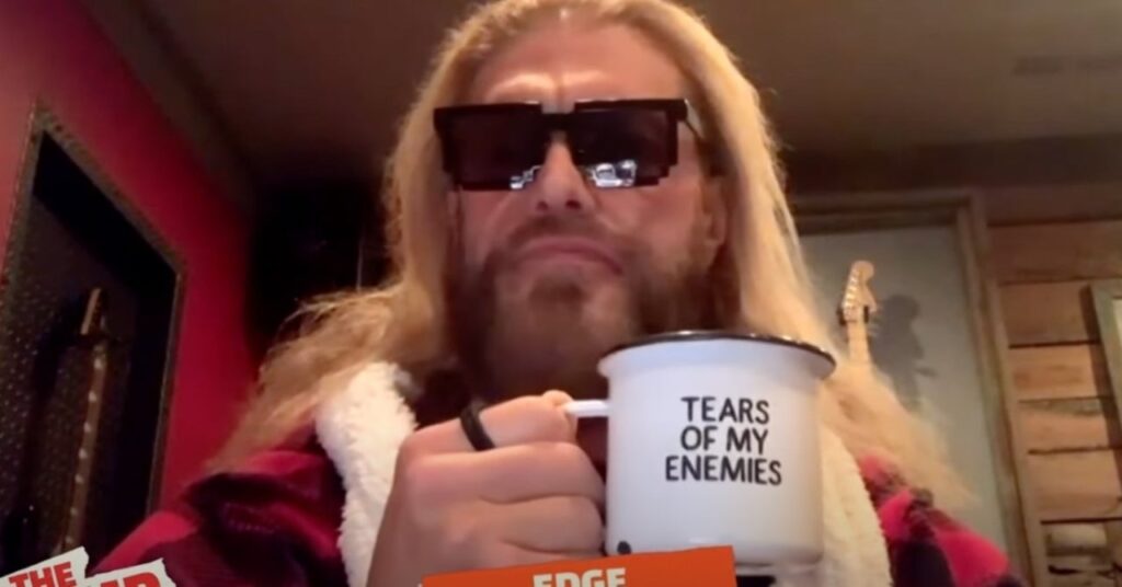 Edge puede tener un partido con Roman Reigns programado para el domingo Dinero en el banco, pero aún así aprovechó la oportunidad para burlarse de Seth Rollins durante su aparición en la edición de esta semana de The Bump. “The Rated-R Superstar” llegó al programa con gafas de sol y una bata mientras bebía de una taza que decía “Tears of My Enemies”. Dijo: “Bueno, vi a Seth Rollins aquí hace un rato y tenía puesta una bata de baño y unas gafas de sol malas, así que pensé en comprar las gafas de Minecraft para niñas y mi bata de cuadros de búfalo. Pensé que era necesario atuendo, ¿no es así? ”
