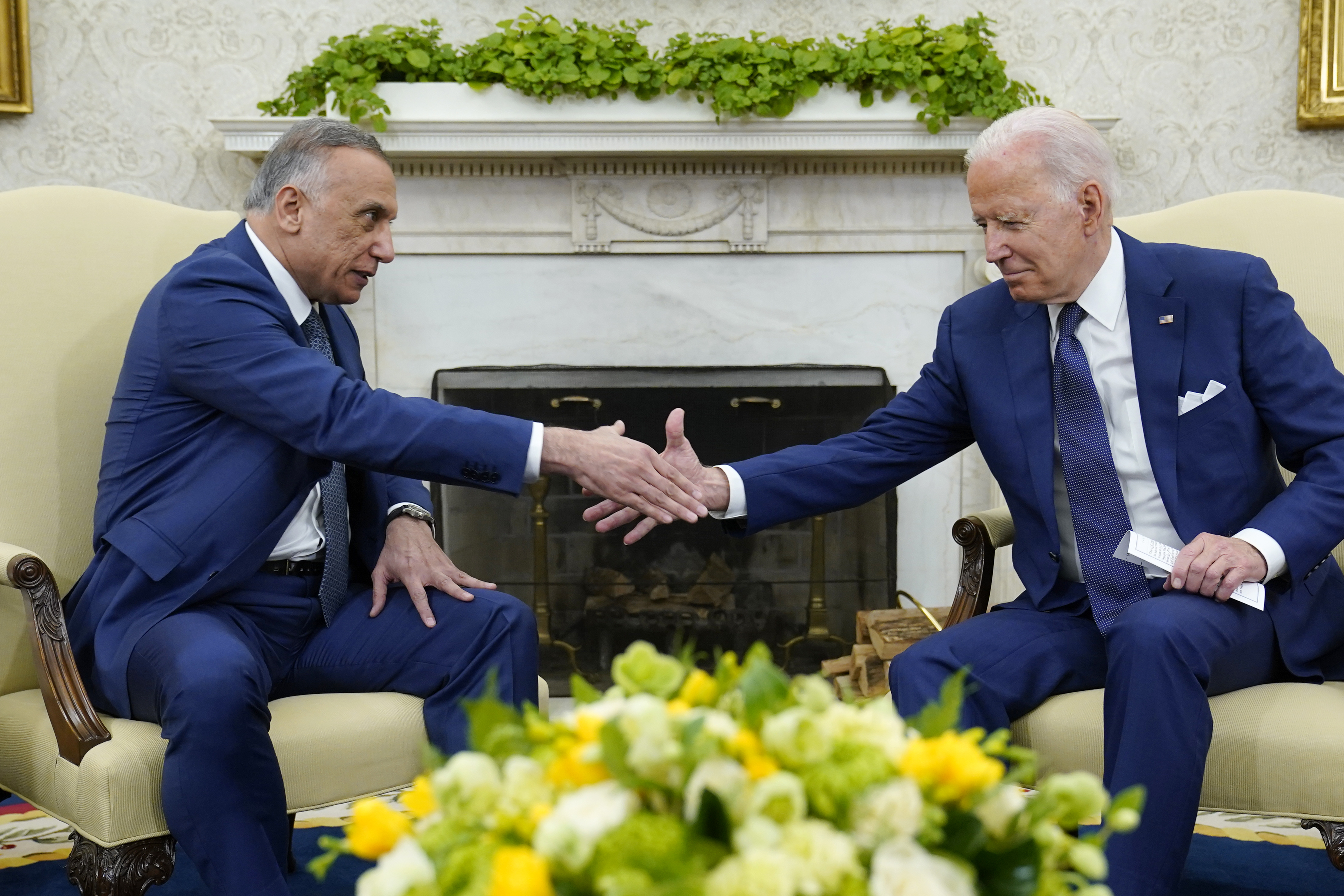 Como hace casi siempre cuando se trata de Irak, Biden recordó que su hijo Beau, fallecido en 2015 debido a un cáncer, estuvo destacado en ese país por el Ejército norteamericano entre 2008 y 2009. El presidente reiteró el compromiso de EE UU de seguir apoyando la consolidación de la democracia en Irak y se declaró esperanzado con las elecciones en ese país el 10 de octubre. Quiso recalcar que Washington seguirá ayudando al Gobierno iraquí en cuestiones sanitarias, de medio ambiente y con miles de dosis de vacunas contra la covid-19, que ya están “de camino” a Bagdad. Las declaraciones de ambos mandatarios se sellaron con el tradicional apretón de manos.