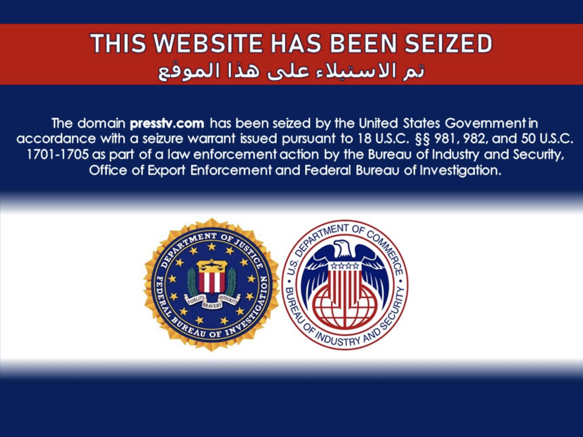 De acuerdo con la nota de Justicia, todas las páginas decomisadas son propiedad de empresas estadounidenses, pero tanto IRVTU y KH tenían que haber sacado las correspondientes licencias para operar en EE UU, cosa que no habían hecho. El Gobierno iraní no hizo comentarios, pero desde los medios se acusó a Washington de censura. “¿Es este otro ejemplo de libertad de prensa en que si a DC no le gusta lo que dices, se incauta de tu dominio?”, tuiteó la presentadora de PressTV Marzieh Hashemí.