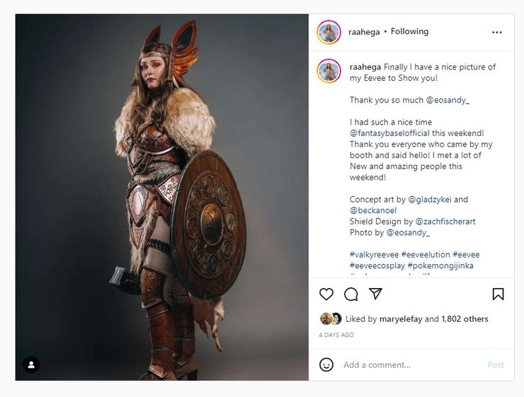 Eevee, el adorable Pokémon de la Generación Uno parecido a un zorro, se ha convertido en un guerrero Valkyrie gracias a un cosplayer imaginativo y muy hábil.