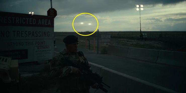 La escena de apertura de Ejército de los muertos deja caer algunas pistas importantes sobre el origen de los zombies. Cuando los camiones abandonan el Área 51 con su preciosa carga útil, se ven dos luces en el cielo (en la foto de arriba) volando repentinamente, lo que implica que algunos visitantes extraterrestres han pasado. Luego, antes de que su viaje sea interrumpido por un accidente repentino, los soldados especulan que podrían estar transportando a un extraterrestre o algo más de origen extraterrestre. Más adelante en la película, se revela que algunos de los zombis alfa tienen una extraña aura azul alrededor de sus órganos internos, lo que nuevamente insinúa alguna ciencia extraña del mundo exterior. ¿El zombi original, Zeus, fue creado en un experimento del gobierno utilizando tecnología alienígena? ¿O podría la conexión del Área 51 convertirse en un engaño total?